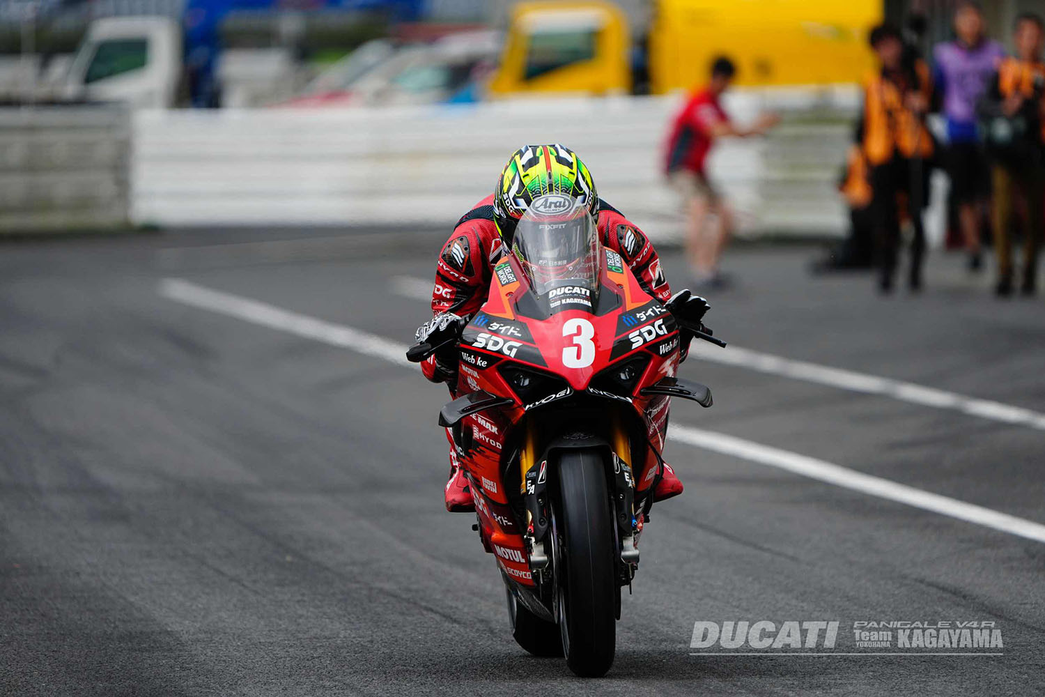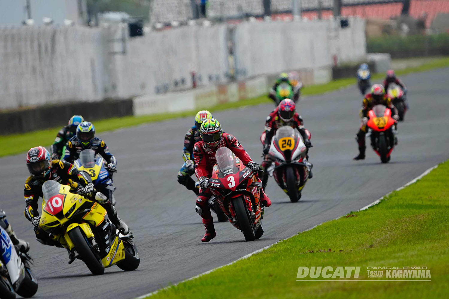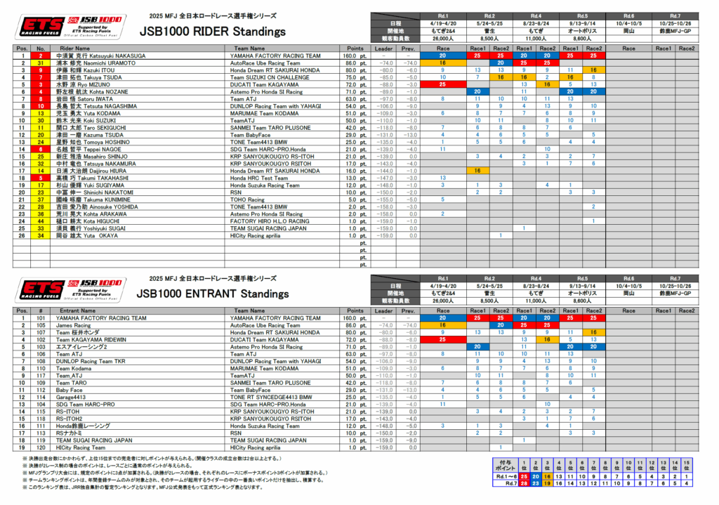 2025 MFJ全日本ロードレース選手権シリーズ第5戦 オートポリス 投稿公開日:2025年9月19日 投稿カテゴリー:RACE レース概要 / Race Overview 日時 2025年9月13-14日 場所 オートポリス 天候 9/13:曇りのち雨/ウェット9/14:曇りのち晴れ/ウェット 監督 加賀山就臣 ライダー #3 水野涼 リザルト <予選>10位 <レース1>11位 <レース2>4位 レース レポート / Race Report 全日本ロードレース第5戦オートポリス大会が、9月13日・14日に大分県・オートポリスで開催されている。9月13日は午前中に予選が、午後はレース1が行われた。今日は朝から厚い雲が空を覆い、いつ雨が降り出しても不思議ではない天候となった。風も4m/sほどあり、それも相まって肌寒さすら感じるほどのコンディション。午前10時10分から30分間の予選は、気温24度の中でスタートした。水野選手は計測1周目を1分52秒648でラップし、2周目に1分50秒436と昨日のタイムを上回る。その後、ピットインしてマシンのセットアップを行い、4周目1分51秒996、5周目1分51秒996と1分51秒台でラップし、ピットイン。最後の周は1分51秒414でラップした。この結果、午後のレース1は10番手から、日曜日のレース2は15番手からそれぞれスタートすることとなった。 15時10分からレース1が15周でスタートした。直前のJP250のレースは途中で雨が降り始めて赤旗中断されており、その後に雨は止んだのだが、JSB1000クラスのサイティングラップ開始時には路面が濡れていて微妙なコンディションとなってしまった。とは言え雨は止んで空も明るくなっていることから、結果的に全車スリックタイヤでスタートを切ることとなった。水野選手はまずまずのスタートを切り、1周目を9番手で戻ってくる。ここからさらにポジションを上げたいところだったが、ペース的には1分50秒後半から51秒台。なかなか飛躍的なポジションアップはできず、11位でチェッカーとなった。 昨日の夜、チームのメカニックが遅くまでマシンを分解し、再チェックしてくれたおかげで、5分間のウォームアップ走行で本来のマシンのフィーリングが戻りました。それでもマシンの状態を確認したかったので序盤は様子を見て、大丈夫だと確信できたのでペースアップし、結果的に4位まで上がることができました。やっとトンネルの出口が見えました。次の岡山は小排気量クラスの頃から良い結果を出しているコースなので、本来の調子に戻ったマシンで全力を出し切ります。 水野涼選手 Ryo Mizuno ■9/13(土) チームがあらゆる角度からマシンの分析をしてくれているのですが、結果的に予選、レース1と状態は変わりませんでした。ライディング面からもいろいろとトライしてみているのですが、マシンがこちらの変化に対して反応してくれないので、厳しい状況が続いています。レース1の中でもいろいろとトライしてみたのですが、変化がありませんでした。チームはこの状態を理解してくれていますし、これからマシンを全バラシしてもう一度あらゆる角度からチェックしてくれると言っているので、状況が良くなることを期待しています。最終ラップは土砂降りになり、ステップから両足を離して安全運転しないといけないほどでした。いろんな意味で、ギリギリのレース1となりました。とにかく諦めず、チームと力を合わせて出口を見つけます。 ■9/14(日) 昨日の夜、チームのメカニックが遅くまでマシンを分解し、再チェックしてくれたおかげで、5分間のウォームアップ走行で本来のマシンのフィーリングが戻りました。それでもマシンの状態を確認したかったので序盤は様子を見て、大丈夫だと確信できたのでペースアップし、結果的に4位まで上がることができました。やっとトンネルの出口が見えました。次の岡山は小排気量クラスの頃から良い結果を出しているコースなので、本来の調子に戻ったマシンで全力を出し切ります。 加賀山就臣 監督 Yukio Kagayama Team Manager ■9/13(土) 事前テストから今日のレース1までずっと、水野が気持ちよく走れるよう、チームとしてできる限りのトライを続けています。ですが結果が明らかなように、まだ全力で攻めに行けるマシンを渡すことができていません。複数の対応策を考え、予選の時間を使って試してみましたが、残念ながらまだ出口が見えていません。ライダー、マシンともにこんな順位を走るポテンシャルではないことは、私がいちばん分かっています。とにかく今は、起きている問題の原因を明確にし、解決策を見つけることに全力を注ぎます。そのために、これからさらに作業を続けます。 ■9/14(日) 夕べ遅くまでメカニックが頑張ってマシンの再チェックをしてくれて、なかなか見えなかった出口にたどり着くことができた感じです。再チェックしたマシンに、昨日のレース1で得たデータをフィードバックさせた結果が、レース2の走りに繋がったと思います。気持ちよく走れるマシンをライダーに渡せなかったことは本当に申し訳なかったし、その状態に持っていくためにメカニックに夜遅くまで